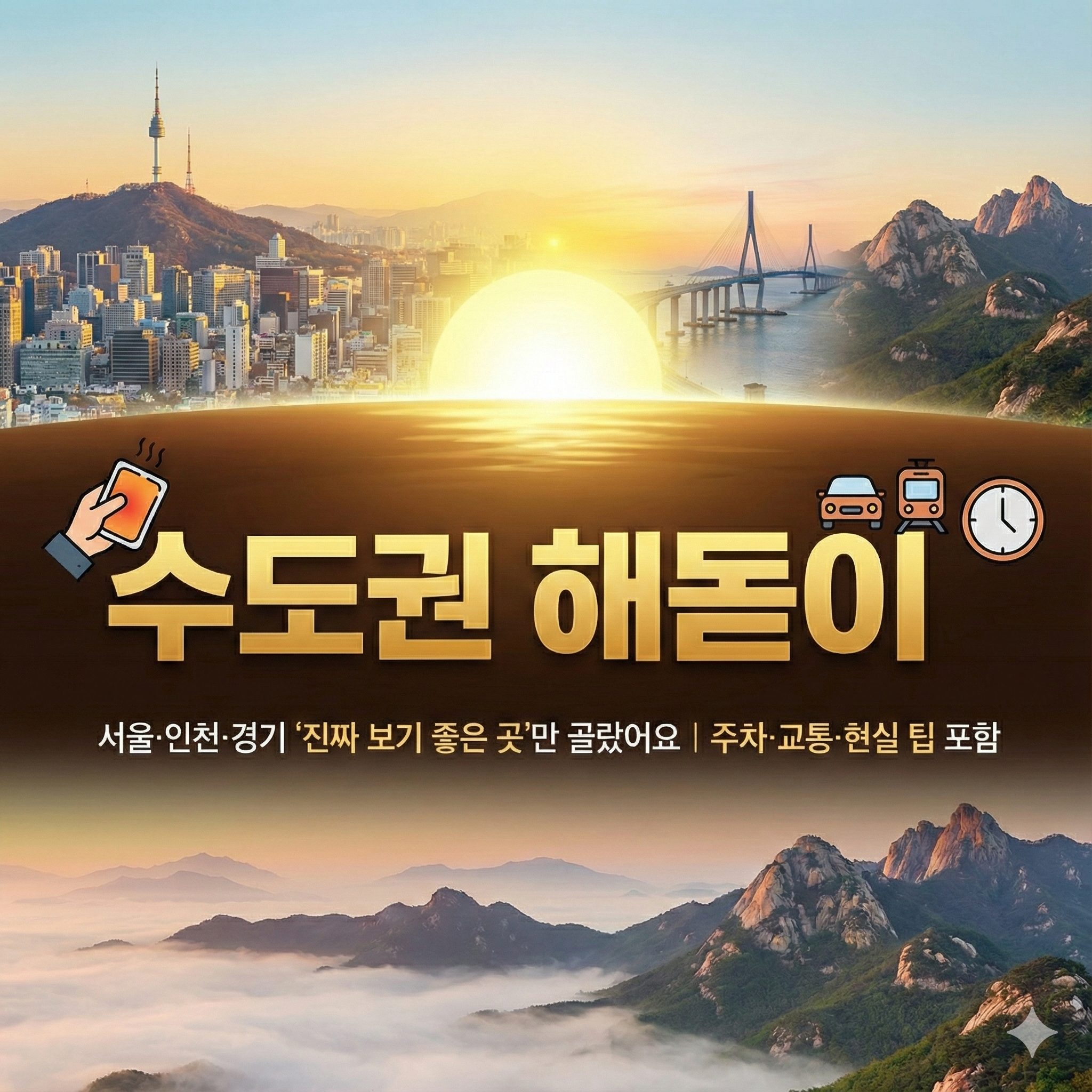 포인트는 딱 하나예요. “내가 원하는 일출이 산 위냐, 도심 뷰냐, 드라이브 감성이냐”. 그걸 먼저 정하면, 수도권 해돋이 명소 선택이 갑자기 쉬워집니다.